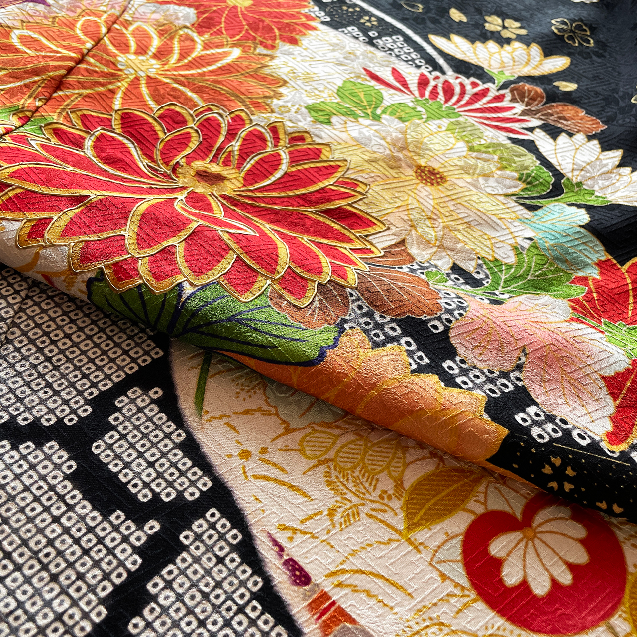 2022年8月20日 / 最終更新日 : 2022年8月20日 Kei-ju ブラック 22-f-024 ここがオススメ! 黒の落ち着いた地色に牡丹や菊が華やかに咲き誇った上品な振袖。 商品説明 品名 振袖 状態 仮絵羽(未仕立て品) 対応 購入&レンタル(オーダーレンタル) 地色 黒 柄 花柄(牡丹、菊)、鹿の子柄 柄付け 絵羽模様 道長取り FacebookXBluesky