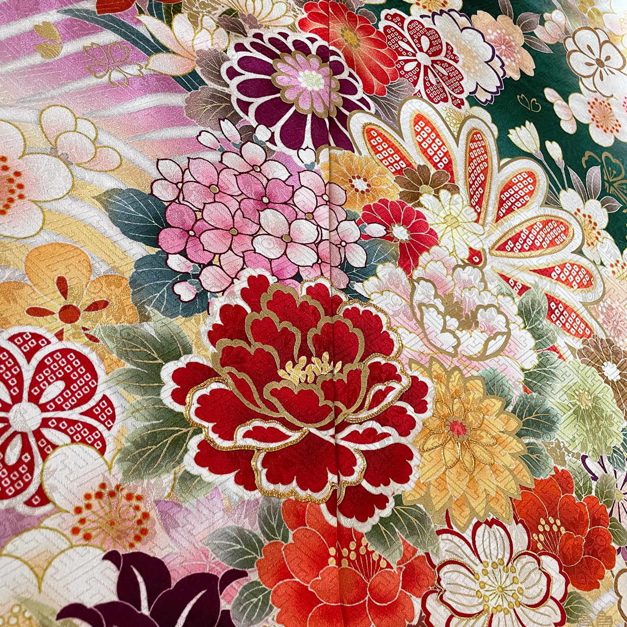 2022年10月3日 / 最終更新日 : 2024年12月2日 Kei-ju グリーン 22-f-056 ここがオススメ! 緑地に咲く満開の桜の花が美しく、牡丹、菊などの花々が豪華な振袖。 商品説明 品名 振袖 状態 プレタ(仕立て上り品) 対応 購入&レンタル 地色 緑 柄 花(牡丹、菊、桜、百合) 柄付け 絵羽模様 全体柄 FacebookXBluesky