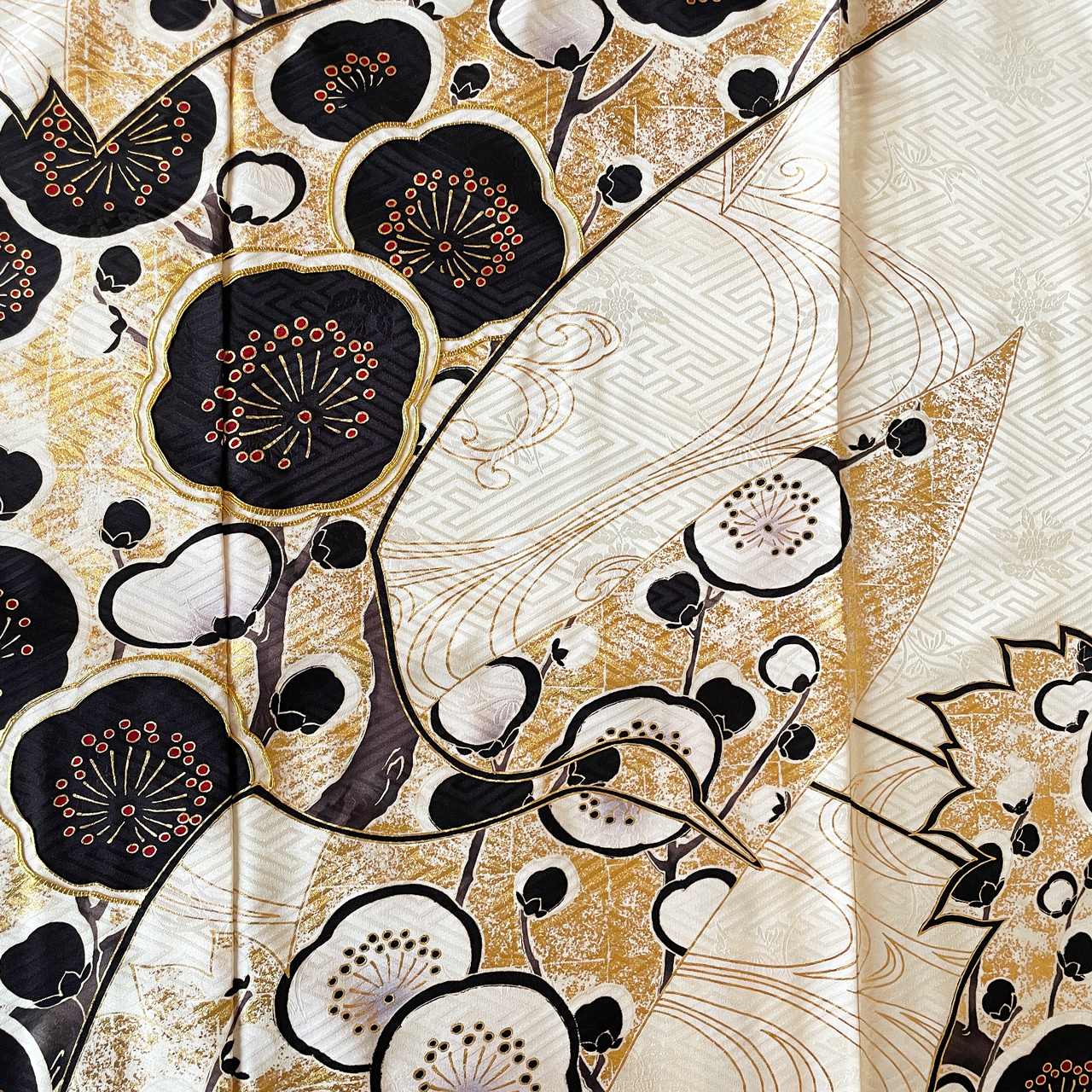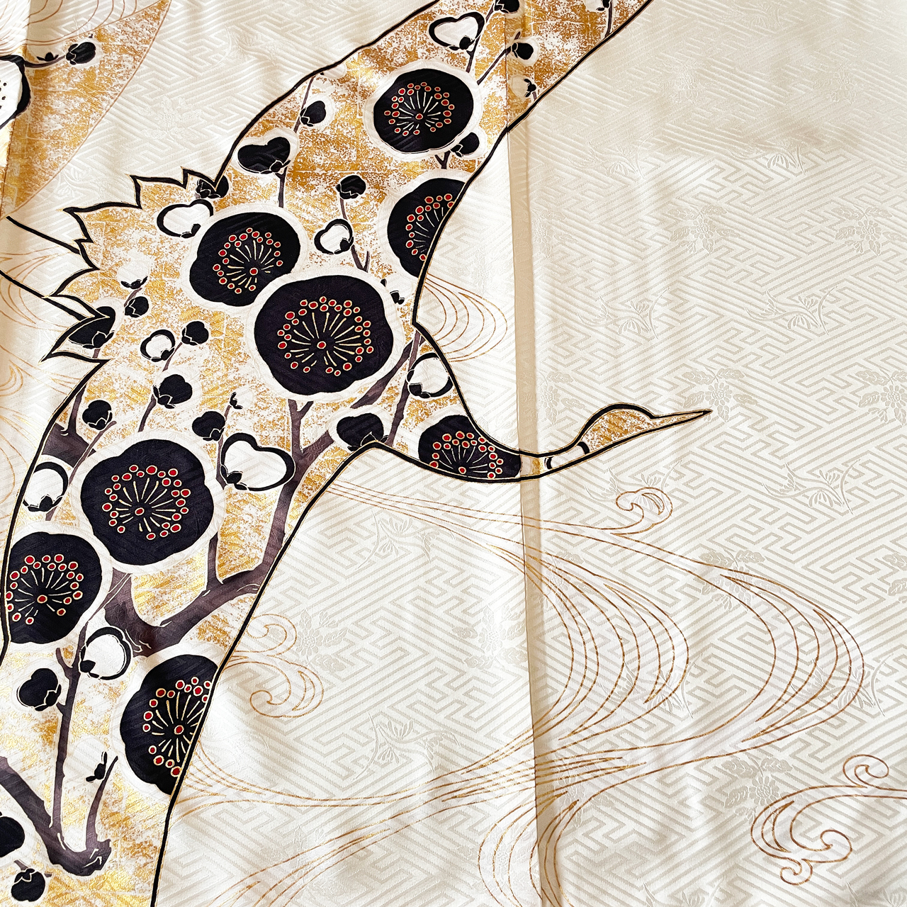 2022年9月2日 / 最終更新日 : 2023年8月28日 Kei-ju ホワイト 22-f-057 ここがオススメ! 鶴と梅のめずらしい組み合わせの振袖。金箔の鶴は成人式らしく華やかで、白・黒のみの配色はクールな雰囲気を演出します。 商品説明 品名 振袖 状態 プレタ(仕立て上り品) 対応 購入&レンタル 地色 白 柄 花柄(梅)、鶴、流水文様 柄付け 絵羽模様 全体柄 FacebookXBluesky