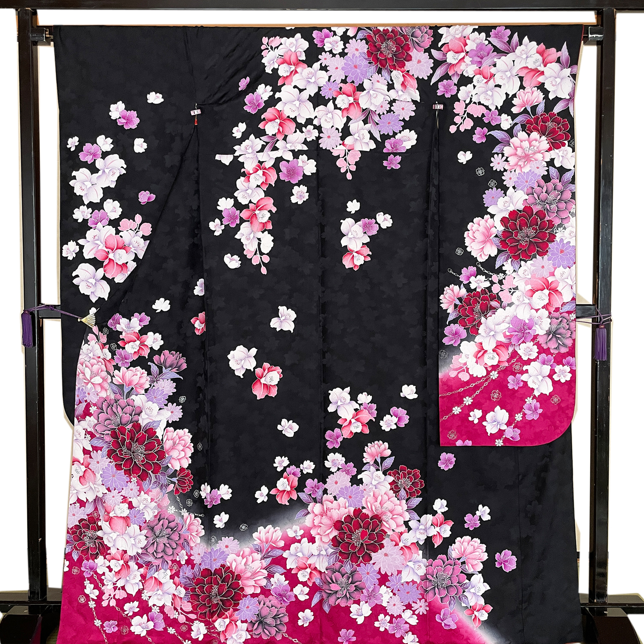 2022年10月3日 / 最終更新日 : 2022年10月15日 Kei-ju ブラック 22-f-060 ここがオススメ! 黒とピンクの染め分けが印象的。白や紫の花々が黒地に映えて、華やかで美しい振袖です。 商品説明 品名 振袖 状態 プレタ(仕立て上り品) 対応 購入&レンタル 地色 黒 柄 花(牡丹、菊、桜、百合) 柄付け 絵羽模様 全体柄 FacebookXBluesky