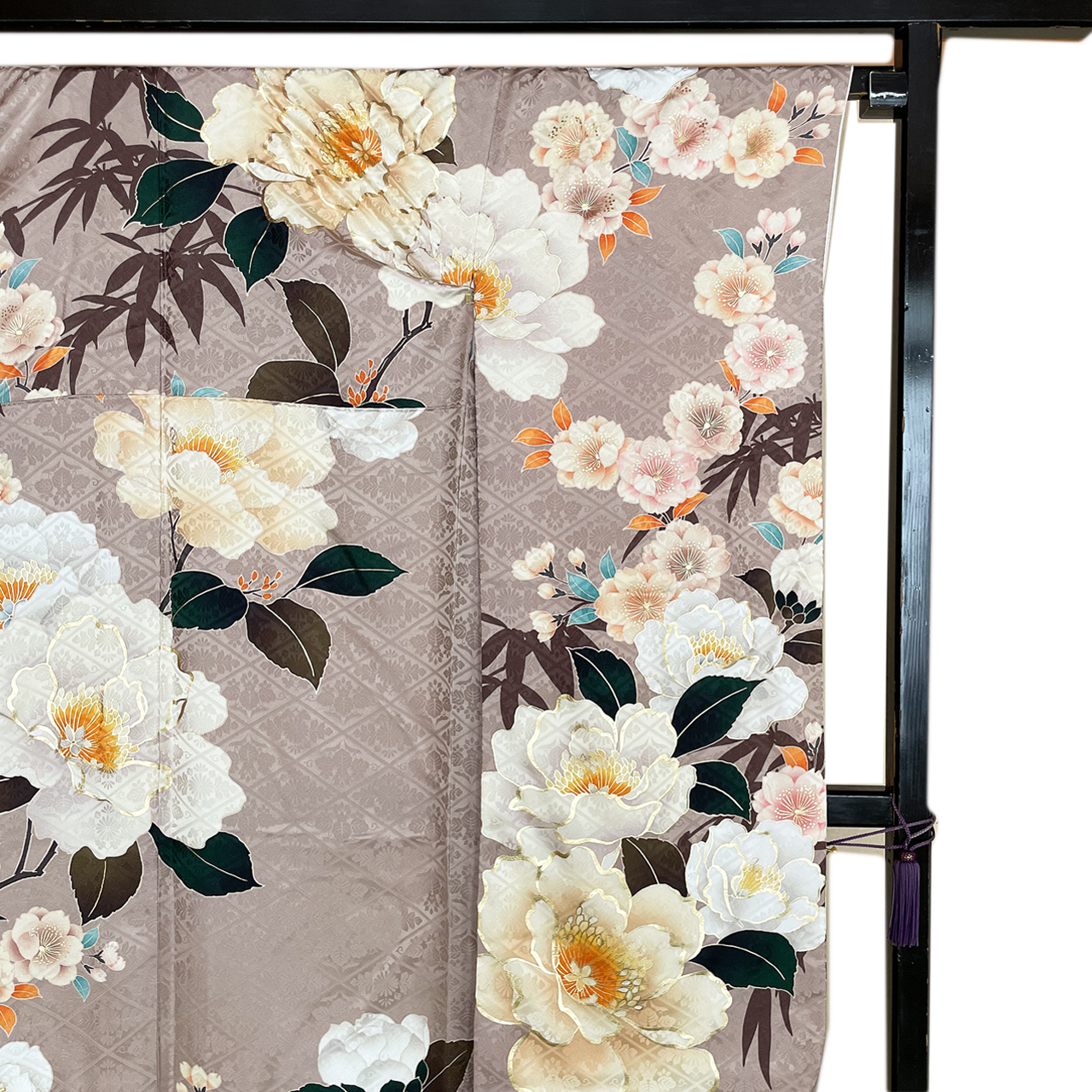 2022年9月11日 / 最終更新日 : 2022年11月5日 Kei-ju ブラウン 22-f-061 ここがオススメ! 大きな牡丹の大胆な配置と、オレンジ・水色の葉がポイント。流行りのニュアンスカラーの地色がお洒落な今時の振袖。 ブランド「Vcinq×葵衣」 商品説明 品名 振袖 状態 プレタ(仕立て上り品) 対応 購入&レンタル 地色 ベージュ 柄 花柄(牡丹、桜) 柄付け 絵羽模様 全体柄 FacebookXBluesky