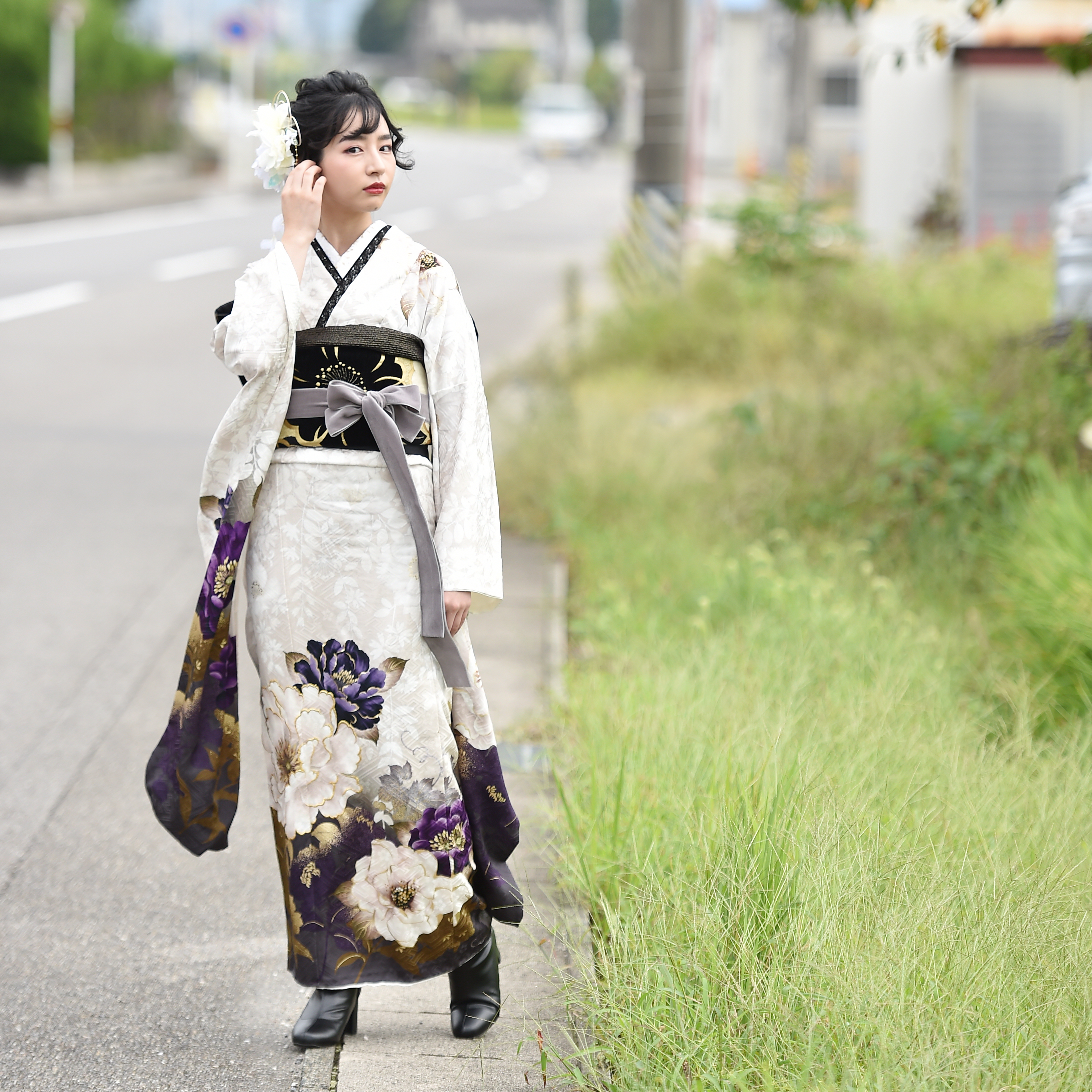 2022年10月3日 / 最終更新日 : 2022年10月15日 Kei-ju ホワイト 22-f-070 ここがオススメ! 裾をメインに柄付けされたエレガントでお洒落な振袖。所々に配置された紫の花が存在感を放ちます。 ブランド「玉城ティナ×紅一点」 商品説明 品名 振袖 状態 プレタ(仕立て上り品) 対応 購入&レンタル 地色 白 柄 花(牡丹) 柄付け FacebookXBluesky