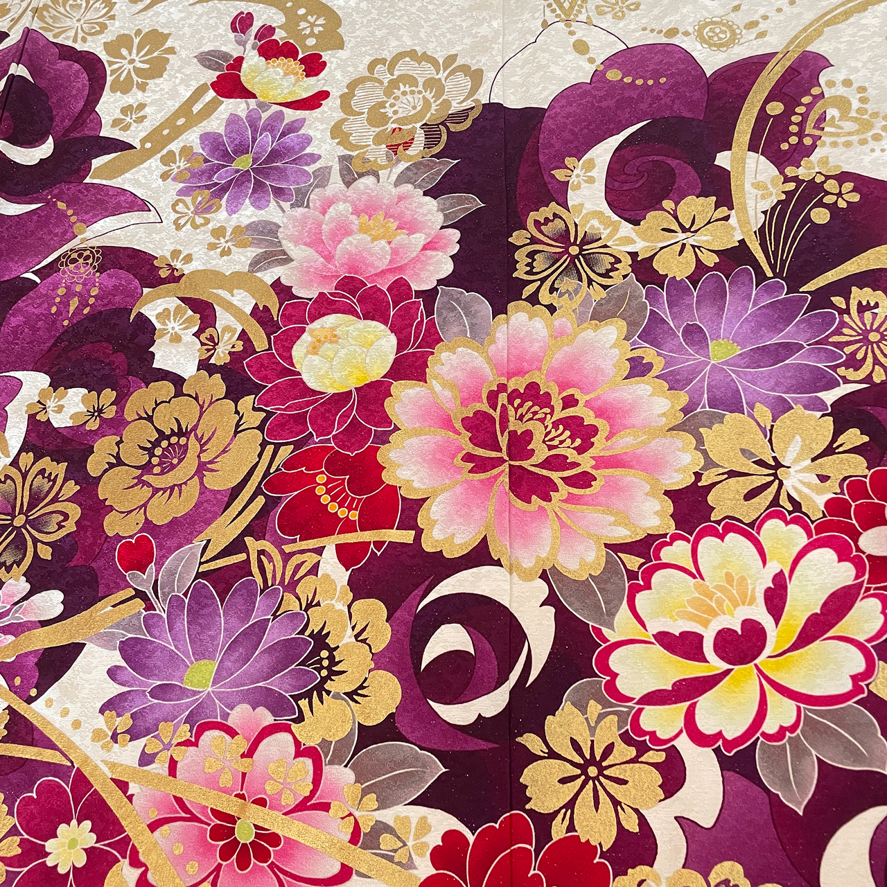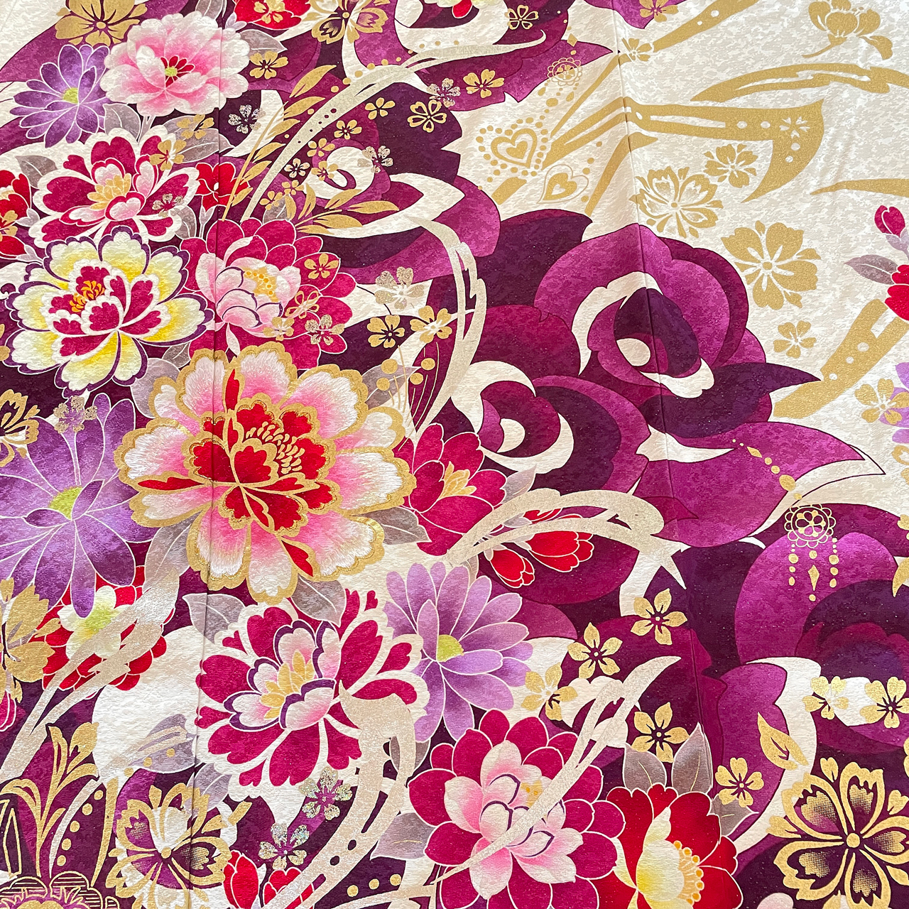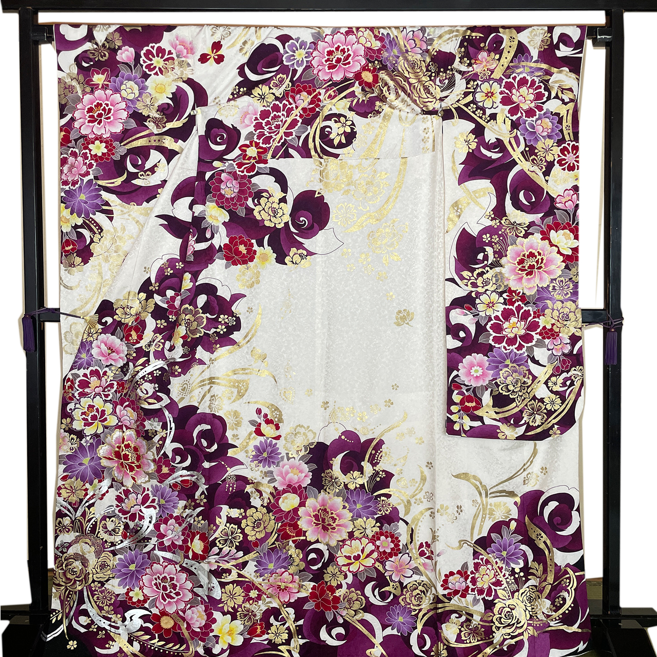 2022年10月21日 / 最終更新日 : 2022年10月21日 Kei-ju ホワイト 22-f-083 ここがオススメ! 金彩の花と紫のバラが豪華で、女の子らしく華やかでかわいい雰囲気の振袖。 商品説明 品名 振袖 状態 プレタ(仕立て上り品) 対応 購入&レンタル 地色 白 柄 花(牡丹、菊、バラ) 柄付け FacebookXBluesky