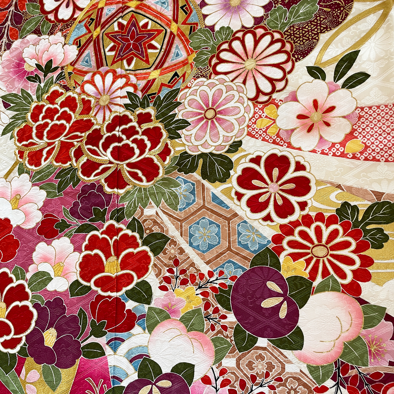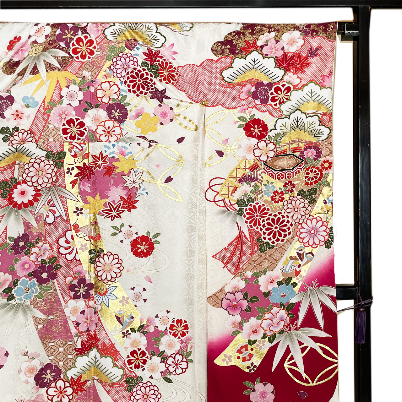 2022年10月21日 / 最終更新日 : 2022年10月21日 Kei-ju ホワイト 22-f-084 ここがオススメ! ピンクと白の染め分けが印象的。全体に配置された花々や熨斗柄を可愛らしいピンクで彩ったキュートな振袖。 商品説明 品名 振袖 状態 プレタ(仕立て上り品) 対応 購入&レンタル 地色 白 柄 花(牡丹、菊、椿、桜)松竹梅、熨斗柄、御所車 柄付け FacebookXBluesky