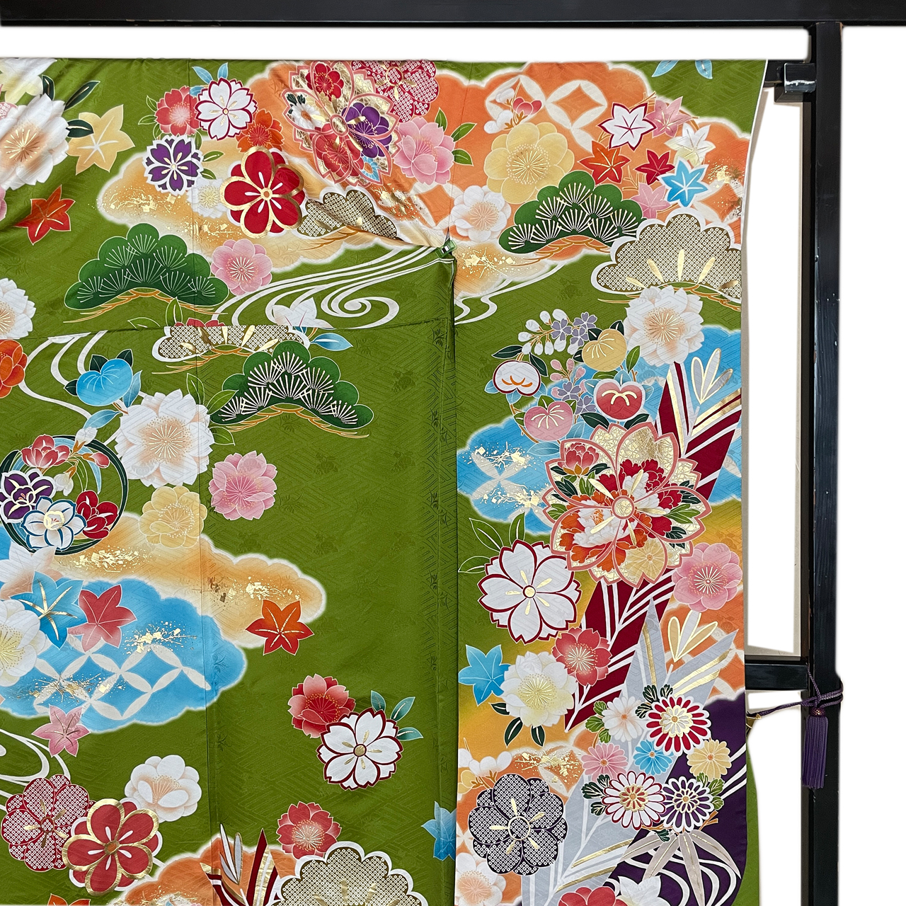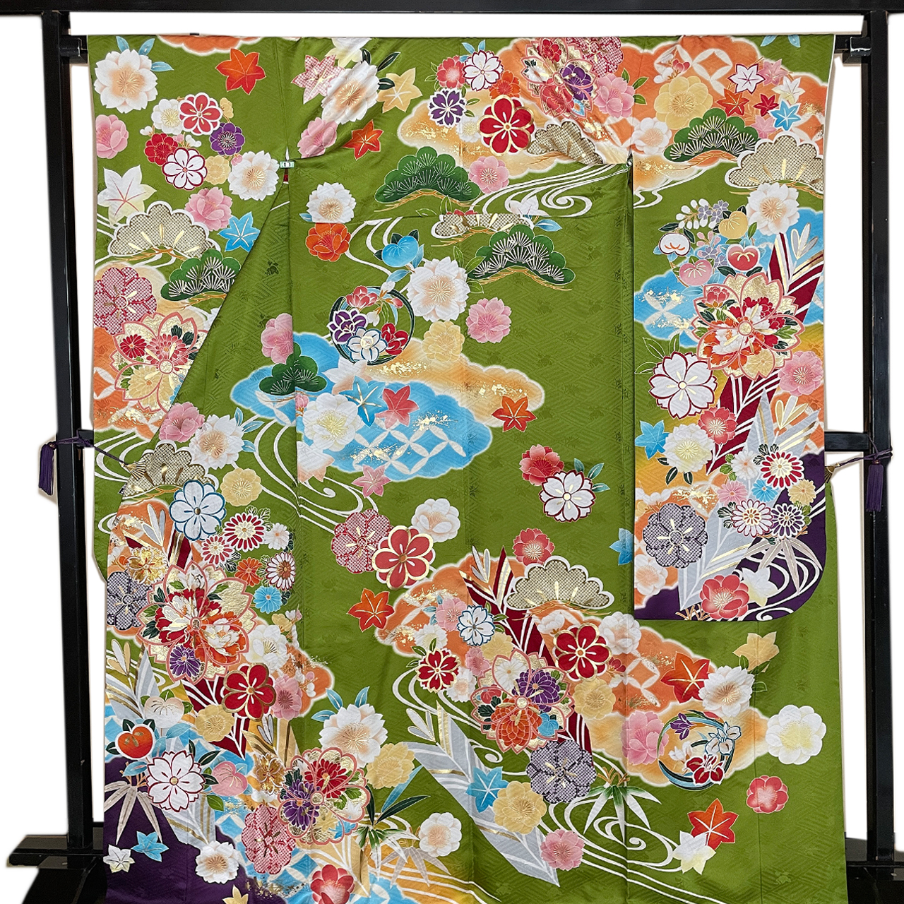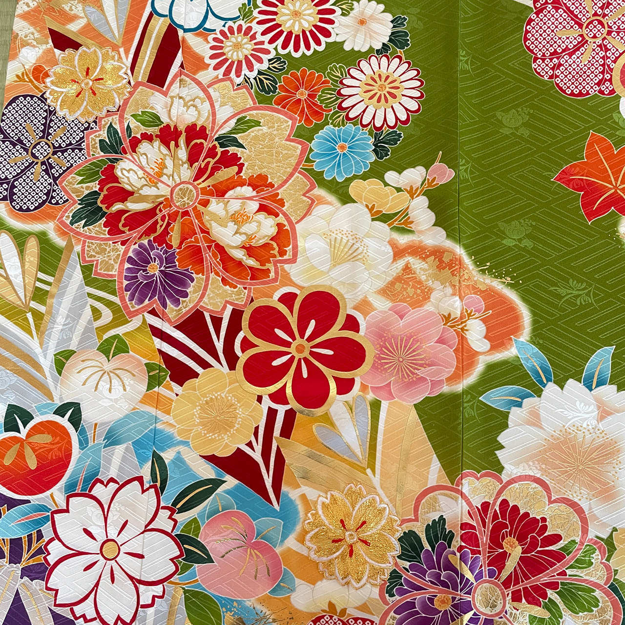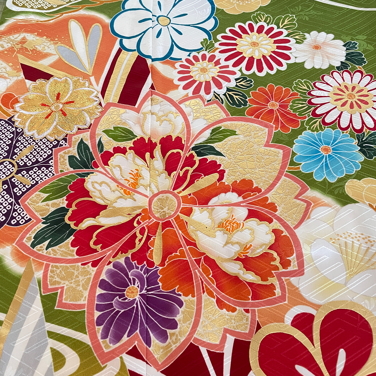 2022年11月5日 / 最終更新日 : 2023年9月1日 Kei-ju グリーン 22-f-090 ここがオススメ! 黄緑地に牡丹、菊、桜の花々が豪華な振袖。カラフルな雲取りが華やかさをプラスします。 商品説明 品名 振袖 状態 プレタ(仕立て上り品) 対応 購入&レンタル 地色 黄緑 柄 花(牡丹、菊、桜)松竹梅、矢羽根、流水文様、雲取り 柄付け FacebookXBluesky