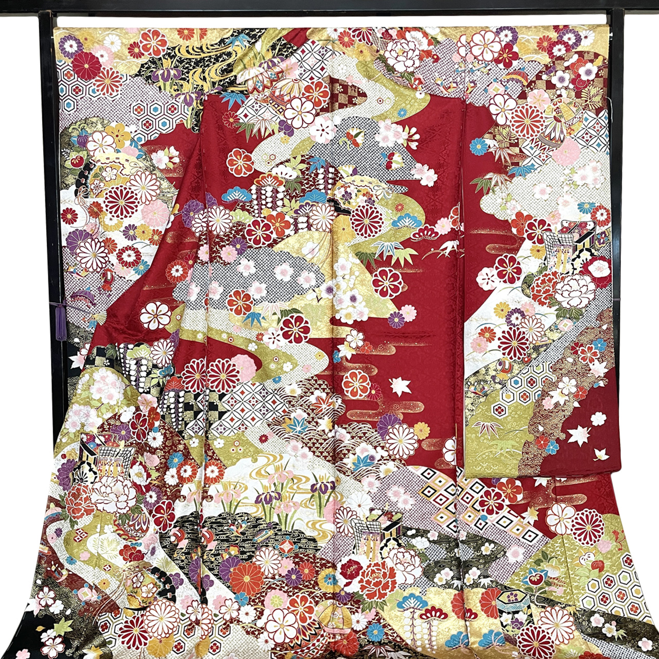 2023年8月3日 / 最終更新日 : 2023年8月3日 Kei-ju レッド 22-f-127 ここがオススメ! 王道の赤色に金彩が豪華な振袖。松竹梅や宝尽くしなどの祝いの模様が、新たな門出にぴったりな逸品です。 商品説明 品名 振袖 状態 仮絵羽(未仕立て品) 対応 購入&レンタル(オーダーレンタル) 地色 赤 柄 花(菊、桜、牡丹)松竹梅、宝尽くし、雲取り、御所車 柄付け FacebookXBluesky