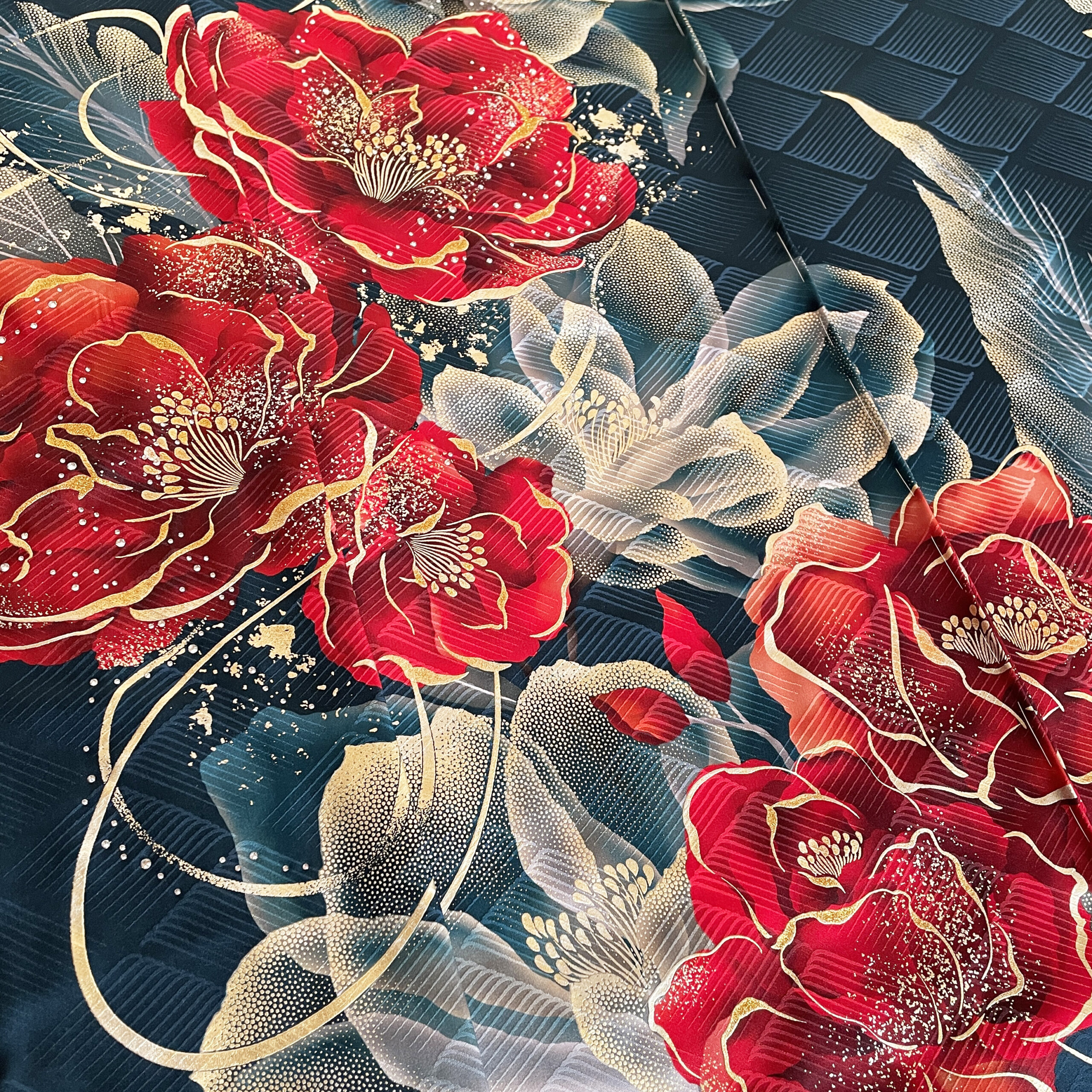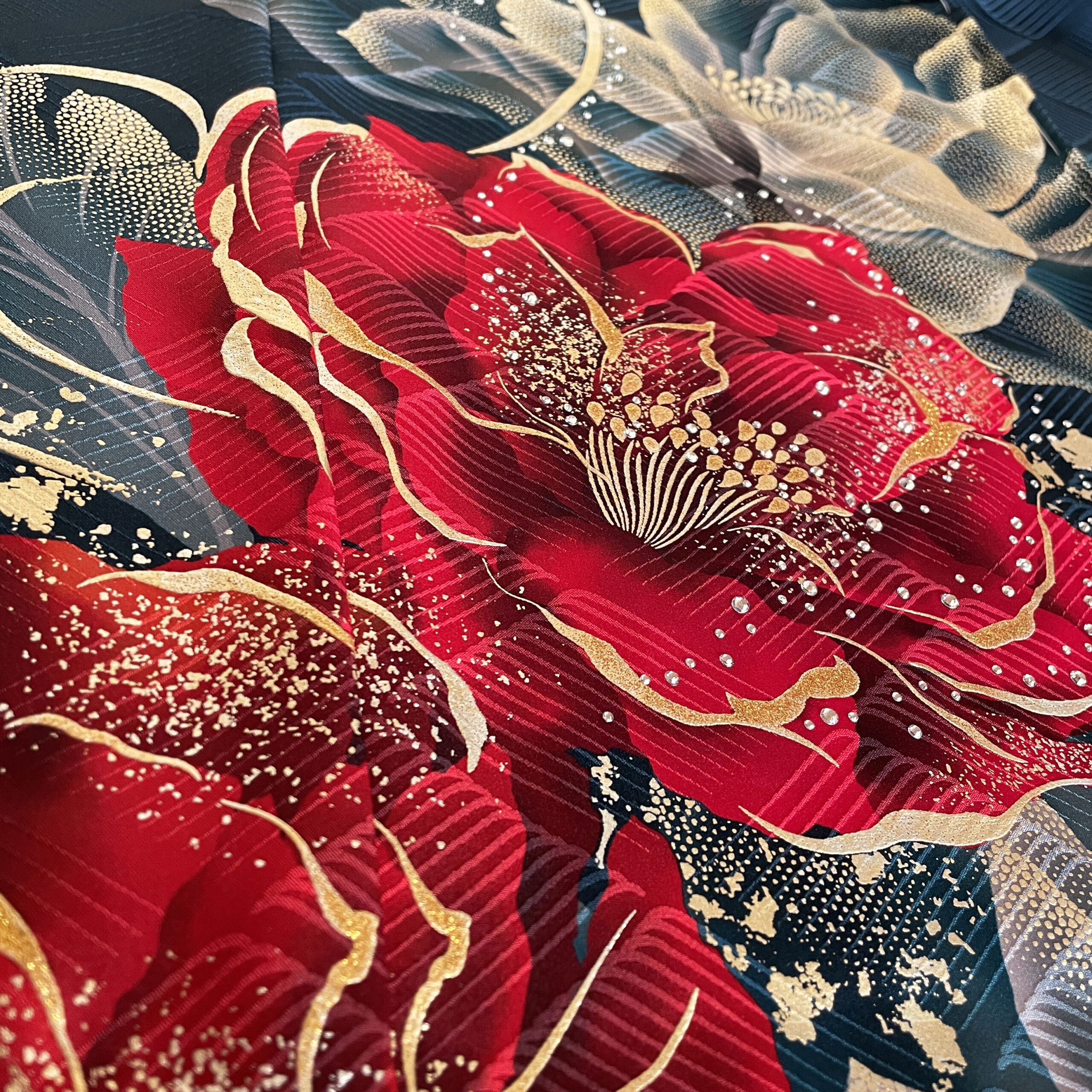 2025年12月5日 / 最終更新日 : 2025年12月5日 Kei-ju ブルー 22-f-163 ここがオススメ! ブルーグリーンの地色にストーンが散りばめられた豪華な振袖。ゴールドと真っ赤な花が際立つクールで大人っぽい雰囲気。 ブランド「SACRA」の振袖です。 商品説明 品名 振袖 状態 仮絵羽(未仕立て品) 対応 購入&レンタル(オーダーレンタル) 地色 紺 柄 花柄 柄付け FacebookXBluesky